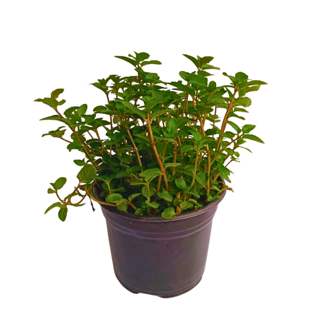 Planta aromática en maceta de 6 pulgadas de diámetro, ideal para jardines o macetas de exterior con luz solar tamizada.