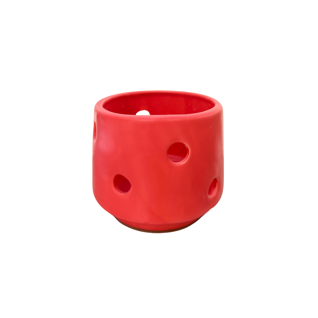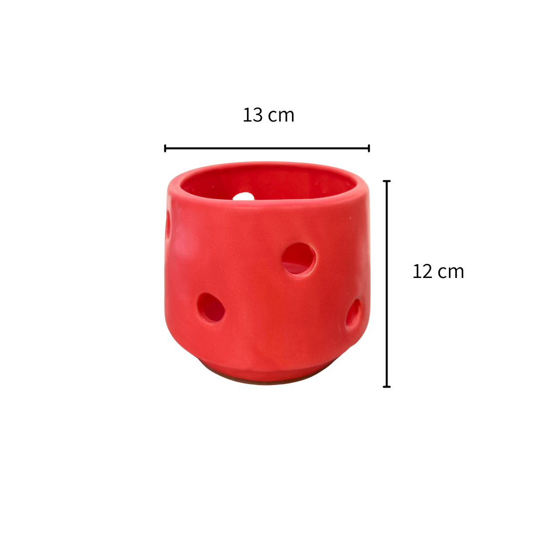 Maceta de cerámica esmaltada diseñada específicamente para orquídeas, con perforaciones estratégicas que garantizan el paso de luz y circulación de aire alrededor de las raíces. El esmalte cerámico proporciona durabilidad y facilita la limpieza, mientras que su estructura permite que el sustrato se seque adecuadamente entre riegos, previniendo la pudrición radicular. Ideal para cultivadores que buscan crear el ambiente perfecto para el desarrollo saludable de sus orquídeas.